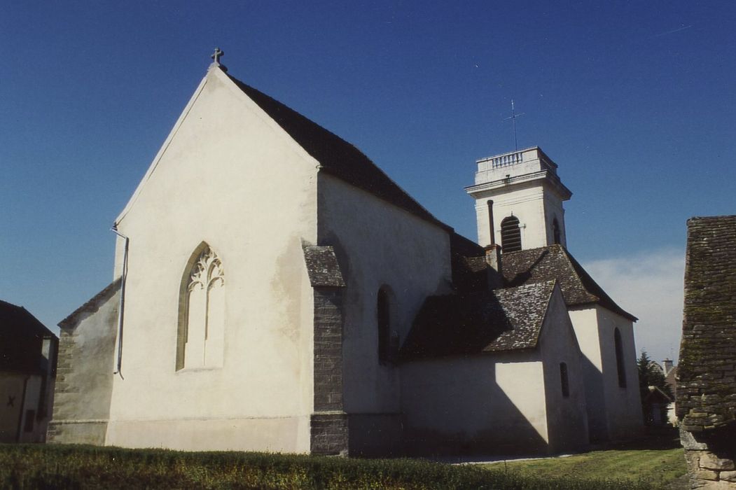 Eglise bâtie à la fin du 15e siècle, dont il ne reste que le choeur couvert d'une voûte sur croisée d'ogives. Au 18e siècle, reconstruction de la nef, flanquée de deux chapelles ; construction d'une tour de clocher porche et décor du choeur par une peinture murale. Au 19e siècle, reconstruction de la fausse voûte de la nef.