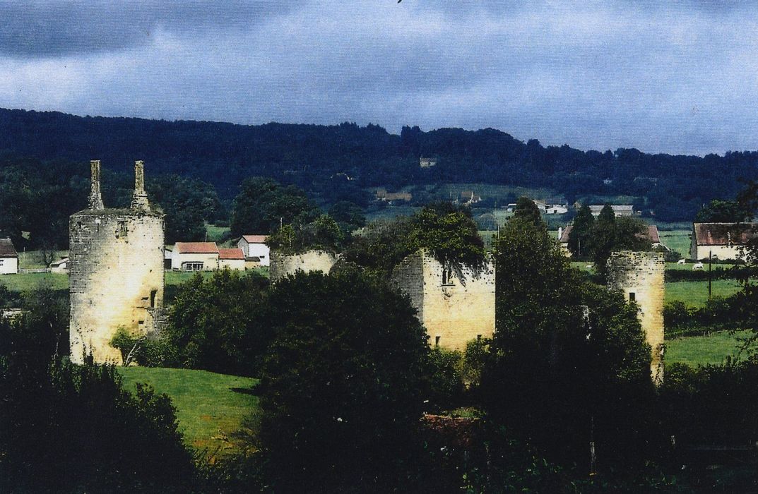 Le château est mentionné à partir de 1316. Abandonné au 17e siècle. Il comprend une enceinte quadrangulaire cantonnée de trois tours rondes et un donjon carré qui abrite une cave voûtée.