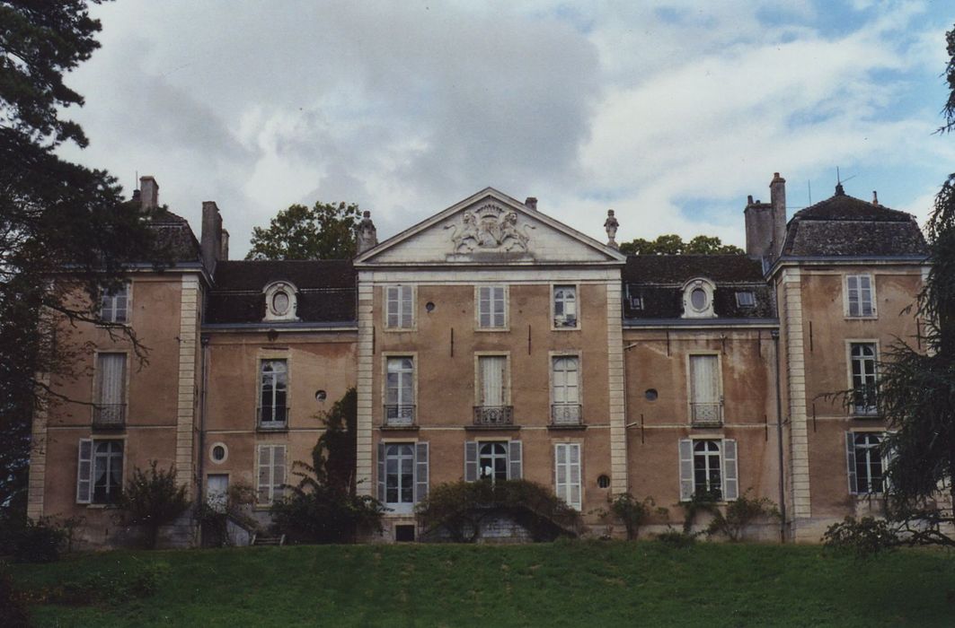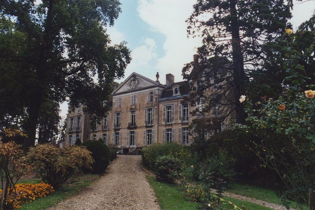 La motte est attestée dès le 13e siècle. Le château semble avoir été réédifié au 17e siècle. Il fut pillé à la Révolution et remanié au 19e siècle. Le château se compose d'un corps de logis rectangulaire, flanqué de deux pavillons latéraux. Le corps de logis principal présente un avant-corps central surmonté d'un fronton triangulaire orné d'armoiries. Le corps central est encadré de deux ailes en léger retrait, flanquées elles-mêmes de pavillons carrés. Les intérieurs conservent leur disposition d'origine. Les boiseries et la décoration en général ont été très remaniées sous Charles X. L'escalier d'honneur a été remplacé au 19e siècle par un escalier en bois. L'ensemble est complété par deux bâtiments de communs et un parc.