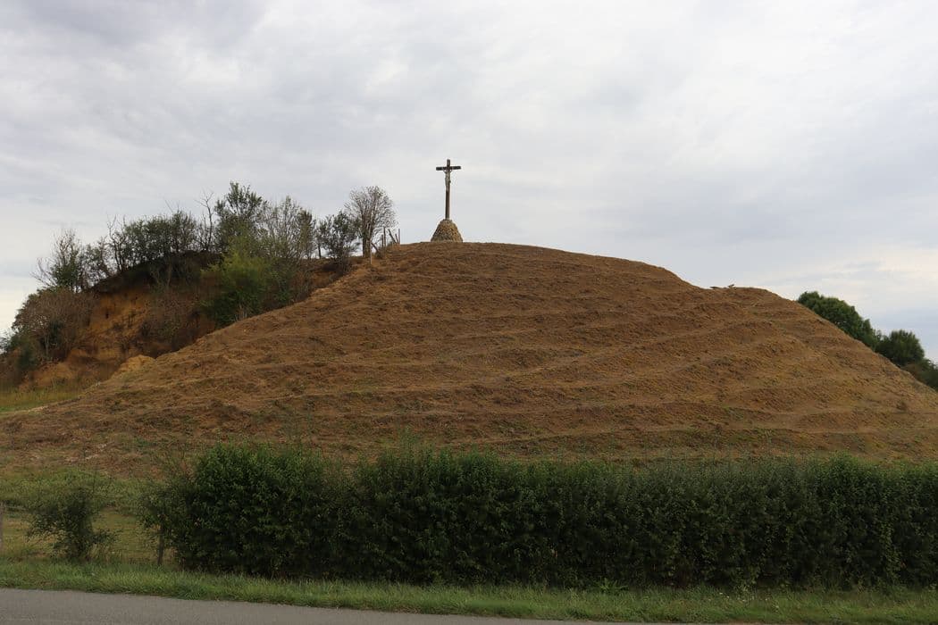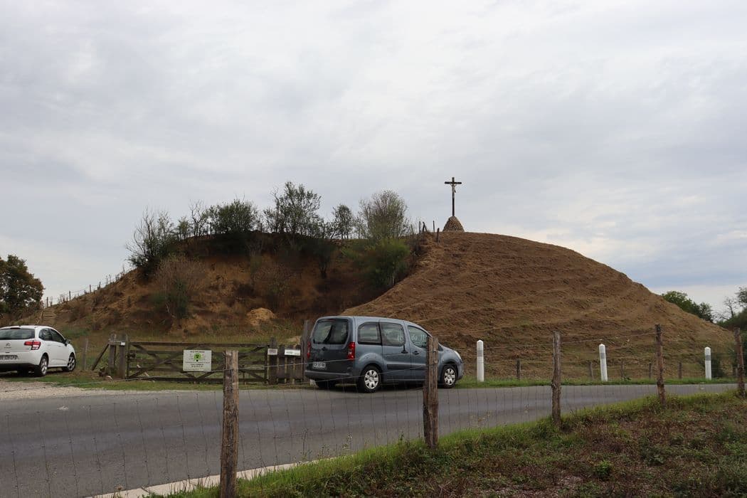 L’ensemble des éléments formant la fortification à motte, soit : le tertre et son fossé circulaire, la basse-cour et son enceinte talutée avec le fossé qui l’entoure, ainsi que les sols des parcelles sur lesquelles ils se trouvent, tels que délimités selon le plan annexé à l’arrêté et figurant sur le cadastre de la commune section A parcelle n°34, 94, 95, 96 : inscription par arrêté du 9 mai 2023