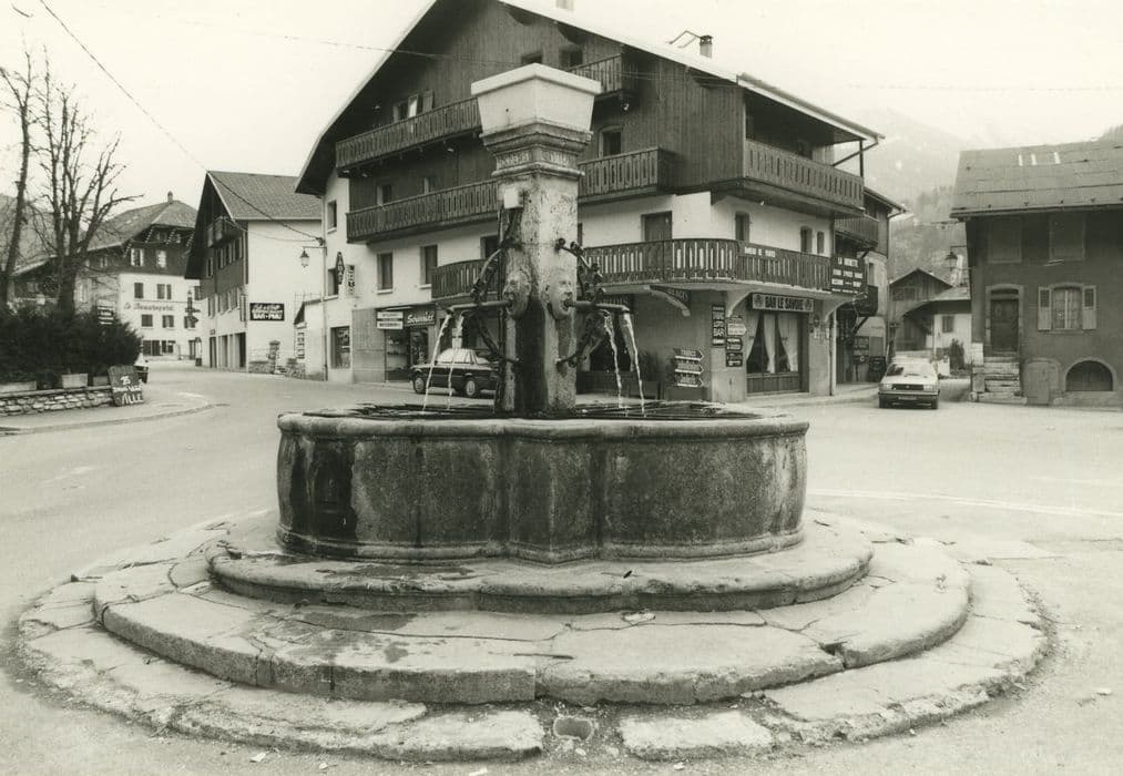 La décision d'édifier une fontaine sur la place publique est prise le 26 juillet 1761 par une délibération du conseil de la communauté de Samoëns, afin que les septimontains puissent profiter d'une eau plus pure. Le 16 août 1761, les bourgeois de la ville décident d'y contribuer pour la fourniture en argent et par la fourniture des bois qui seront pris dans les endroits les plus à portée du bourg et de chaque hameau de ladite paroisse. Les habitants sont mis à contribution par le moyen des corvées nécessaires pour le transport des matériaux et creusement des canaux. L'ouvrage est confié aux frères Morrand de la paroisse de Sixt.