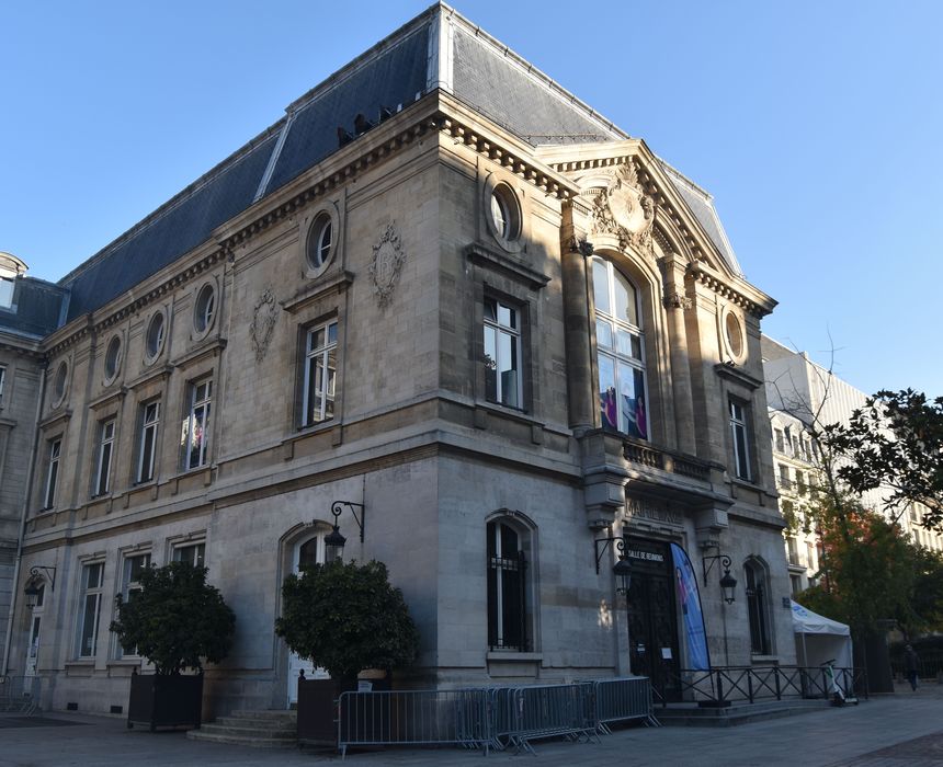 Cet édifice fut construit entre 1873 et 1876. Dès 1913, un projet d'agrandissement est confié à l'architecte Léon Jaussely intégrant la surélévation de l'aile gauche et la reconstruction de l'aile droite. La décoration de la salle des fêtes, de style Art-Déco, est l'oeuvre du peintre décorateur Henri Rapin, auteur des peintures des voûtes sur le thème des quatre saisons, du panneau du fond de la salle et des stucs décoratifs. Le peintre Victor Guillonnet a réalisé la partie centrale du plafond. Les travaux sont achevés en 1928 et la salle est inaugurée en 1929.
