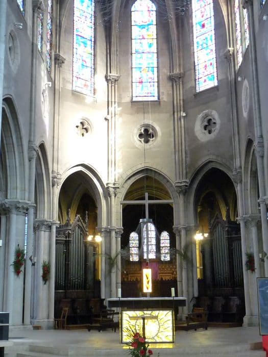 Édifiée, de 1854 à 1859, selon les plans de l'architecte Jean-Baptiste Lassus, l'église, achevée par son élève Casimir Truchy, constitue une illustration très aboutie de l'architecture néo-gothique. Lassus adopte le modèle et le style des grandes cathédrales du 13e siècle du Nord de la France qu'il maîtrise parfaitement grâce à ses recherches archéologiques et son expérience de restaurateur. Il dessinera lui-même le mobilier dans un style néo-gothique (tribune de l'orgue, confessionnaux, stalles,etc) et des artistes spécialisés dans le goût médiéval seront sollicités pour le décor sculpté comme Aimé-Napoléon Perrey, et les vitraux , exécutés, en partie, par Louis Steinheil.