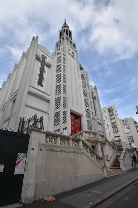 Les pères de l'ordre salésien de Don Bosco commandent en 1933 une église, sanctuaire national de leur saint patron, qui s'inscrivait à l'origine dans un projet plus vaste de bâtiments destinés à un patronage et un internat à l'usage de jeunes défavorisés. Eglise des chantiers du Cardinal, elle ne reçoit aucun financement du diocèse pour sa construction. L'église est l'oeuvre d'un architecte méconnu, Demetrius Rotter. Celui-ci s'est inspiré, pour la silhouette extérieure, de l'église de Perret au Raincy pour créer un édifice au voûtement angulaire proche des réalisations de Dom Bellot. Son décor homogène est l'oeuvre de la société Mauméjean Frères qui donne les dessins, réalise le décor peint, les mosaïques et une partie des vitraux. Antoine Bessac et Jean Gaudin se partagent le reste des verrières. Cet édifice donne un exemple des derniers décors figurés des églises avant leur disparition après-guerre.
