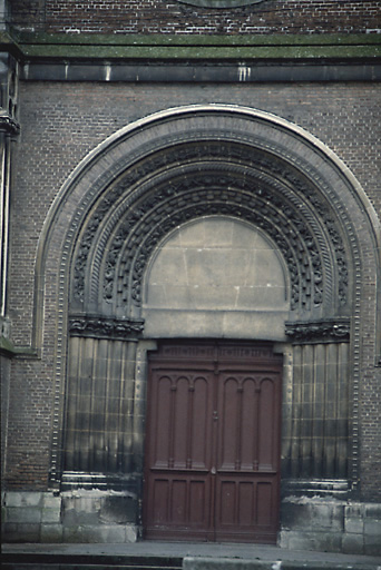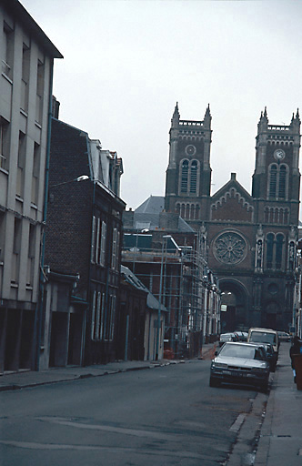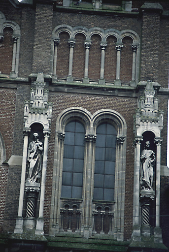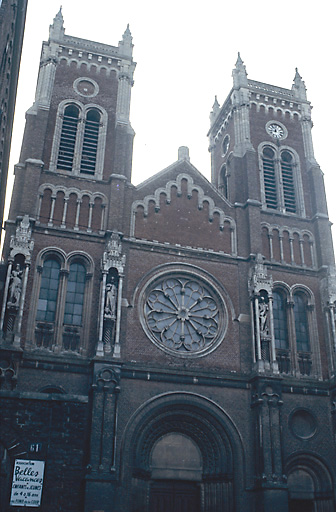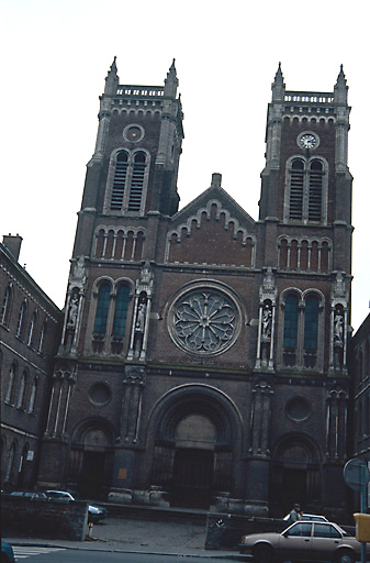 Reconstruit sur les plans de l'architecte Victor Louis Delefortrie, l'ensemble comprend une église, un vaste presbytère et une école qui encadrent la cour. L'église se distingue par la combinaison d'un espace intérieur gothique et d'un traitement roman de la façade. Le programme iconographique complexe a été mis en oeuvre en l'honneur de la congrégation des Lazaristes (peintures, verrières, bas-reliefs).