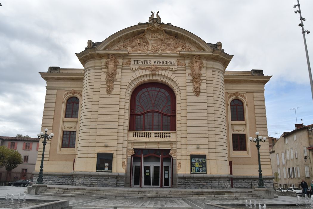 Dès 1891, le conseil municipal envisage la construction d'une salle lyrique en raison de l'existence de nombreuses sociétés musicales et la volonté de distraire les 2500 artilleurs stationnés à Castres. Les plans de l'architecte Galinier sont approuvés en 1899, le théâtre inauguré en 1904. Décor intérieur inspiré par le courant Art Nouveau, en particulier le tableau du foyer (1902) et le plafond de la salle de spectacle réalisé par Jean-Paul Laurens en 1908. Les quatre thèmes représentés sont influencés par le théâtre de Shakespeare. Une rénovation et une mise en sécurité effectuées en 1982, vont faire disparaître les dispositifs de scène, la machinerie d'origine et des éléments de décor tels que les papiers peints. ££L'édifice a un niveau de soubassement de granit gris à bossage irrégulier. L'avant-corps est composé d'un arc unique à voussure qui se développe sur deux niveaux de la façade et ouvre sur le vestibule au rez-de-chaussée et le foyer en étage. Cet avant-corps est flanqué par deux élévations latérales. En partie haute, le fronton centré est orné d'un blason rocaille aux armes de la ville, surmonté d'une lyre et cantonné de deux lions couchés inscrits dans des rinceaux. Les deux élévations latérales renferment les escaliers de desserte. Cet ensemble s'inspire du 18e siècle. Sur le côté s'ouvre une double porte en anse de panier dont les ferronneries sont d'inspiration Art Nouveau, tranchant avec le style historiciste de la façade. A l'intérieur, le décor est plaqué sur une ossature en fonte. Le sculpteur Viala confectionne les motifs de staff et de carton pierre de la salle, dans l'esprit Art Nouveau.
