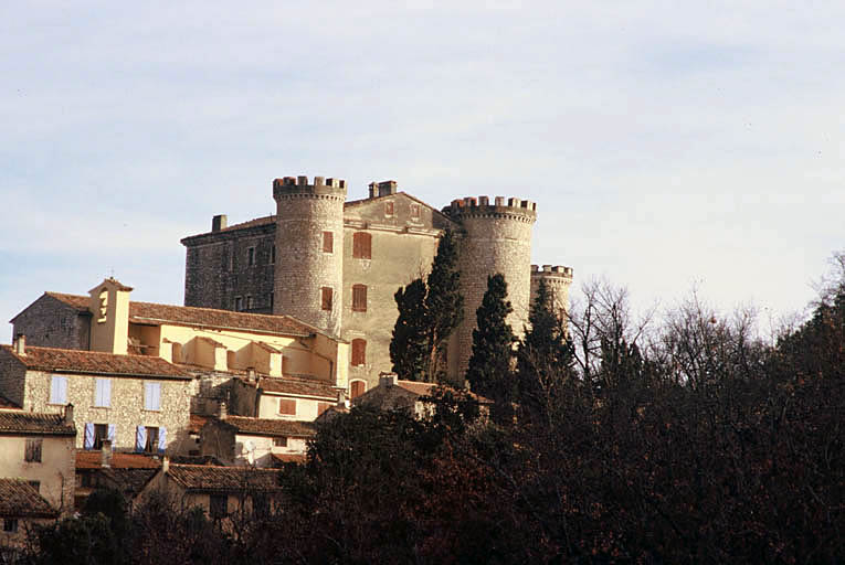 Château mentionné à partir du 13e siècle. Au début du 17e siècle, réaménagement du château médiéval. Création du parc au 18e siècle. En 1820, relèvement de l'édifice, délabré suite à la Révolution. Agrandissement par une aile en retour en 1865. Le corps principal, d'origine médiévale, est un massif carré cantonné de trois tours remontées et crénelées au 19e siècle. Une quatrième tour similaire mais plus tardive est ajoutée à l'aile est. Le parc est créé au 18e siècle, avec une composition répondant à l'axe des façades. Dans l'espace central se trouvent le pigeonnier et le poulailler. Les communs situés près de l'entrée du parc ont été transformés en habitation. En 1747, une citerne souterraine voûtée et soutenue par vingt piliers est creusée pour l'arrosage.