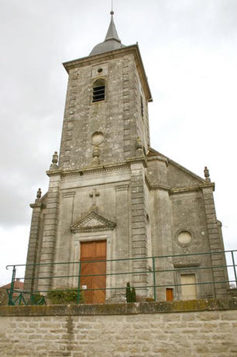 Construite de 1789 à 1791 en calcaire et pierre de taille, la typologie de l'édifice est celle d'une église-halle avec chur polygonal et tour clocher hors oeuvre en façade. La structure comporte une nef et deux bas-côtés, une abside pentagonale et un couvrement en voûtes d'arêtes et voûtes d'ogives. L'élévation appartient à l'ordre toscan. Elle est ornée de motifs végétalisants rythmant la composition en travées de la façade. La couverture, en ardoise, présente une croupe et un dôme polygonaux. La conception de l'église peut être attribuée à l'architecte du 18ème siècle, François -Nicolas Lancret. Elle offre un ensemble d'éléments d'ébénisterie, de sculpture et de ferronnerie du 18ème siècle. L'ornementation des autels latéraux et des retables est très variée et de qualité.