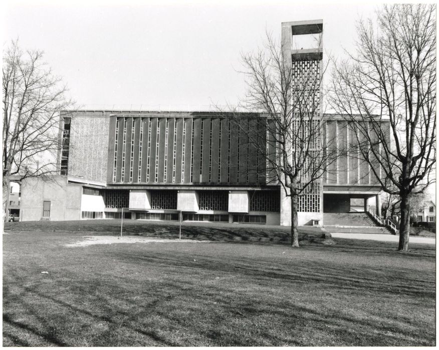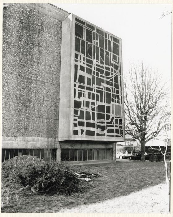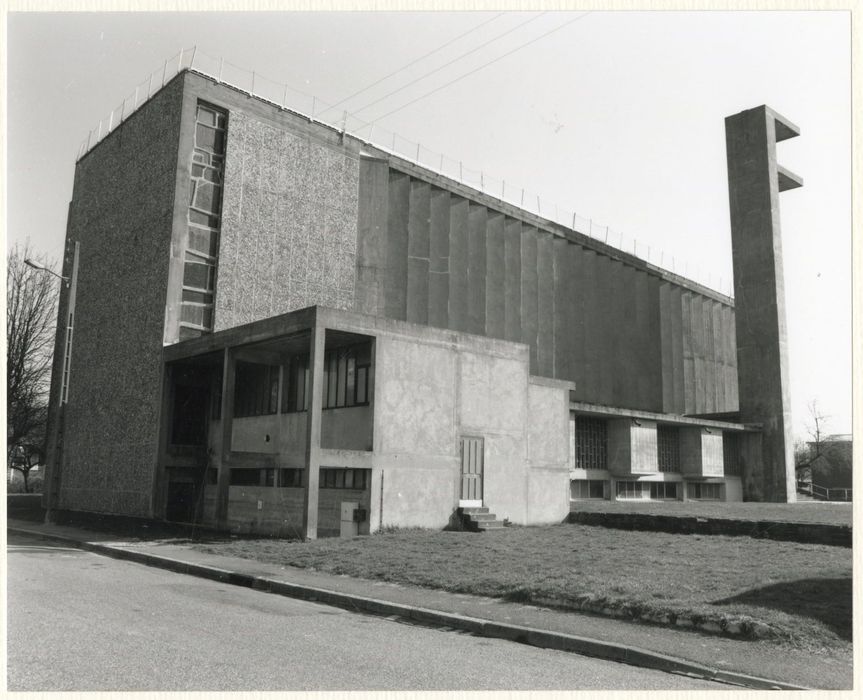Après les bombardements de 1944, lassociation diocésaine prend la décision de construire une église dans le quartier ouvrier de la Pépinière. Larchitecte choisi est M. Lods, qui propose un projet de centre paroissial réunissant église, sacristies, salles de réunion et de catéchisme, logements du curé et des vicaires. Seule léglise, accompagnée dune sacristie et dun logement pour les vicaires, fut construite entre 1952 et 1957. Cest un édifice rectangulaire en béton armé, flanqué dun clocher hors uvre. Les vitraux en dalle de verre sont dus à Jean-Luc Perrot.