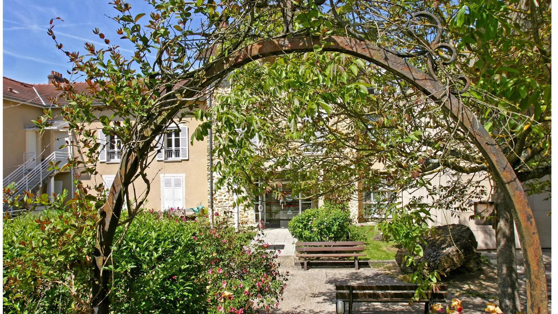 Jardin de plantes traditionnellement cultivées en Seine-et-Marne (dont dix variétés d’osier), sélectionnées et disposées tout autour du bâtiment par Joël Chatain, paysagiste DPLG, et jardin pédagogique.