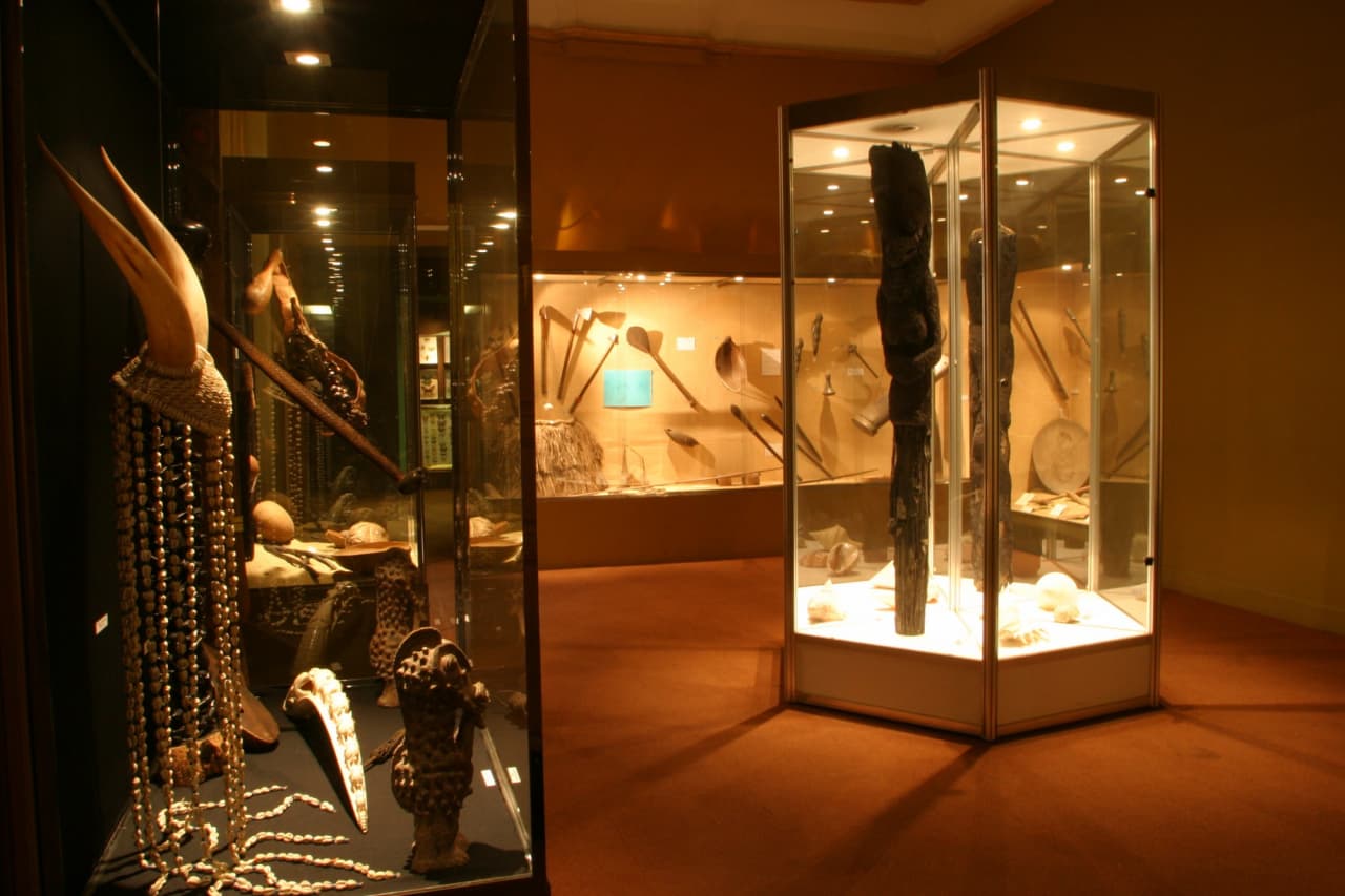 Les salles d'exposition, influencées par l'histoire de l'institution, ont parfois le cachet des cabinets de curiosités comme là où les objets usuels et culturels Polynésiens, Mélanésiens, Africains se rapprochent de cadres du siècle dernier composés de mollusques et d'insectes, et d'un grand crocodile du Siam.
