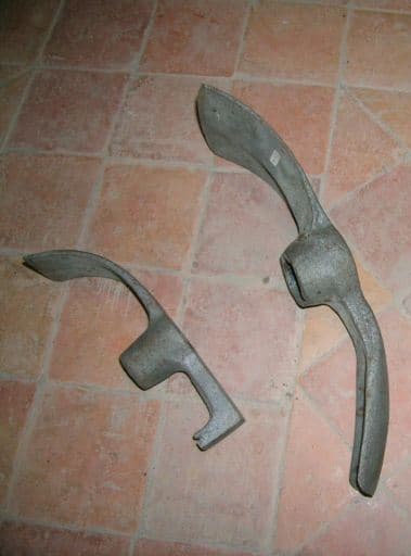 herminette courbe : h = 35,5 ; la = 11,5 ; pr = 5 cm herminette à talon : h = 22 ; la = 6 ; pr = 5 cm