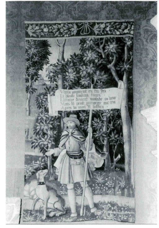 Sur ce fragment apparaît seulement le berger moralisateur et son chien ainsi que l'inscription qui donne sens à l'ensemble de la tapisserie, sur un fond de verdure. Seule la partie supérieure de la bordure subsiste comportant des guirlandes de fruits et de feuilles liées par un noeud double sur fond bleu.