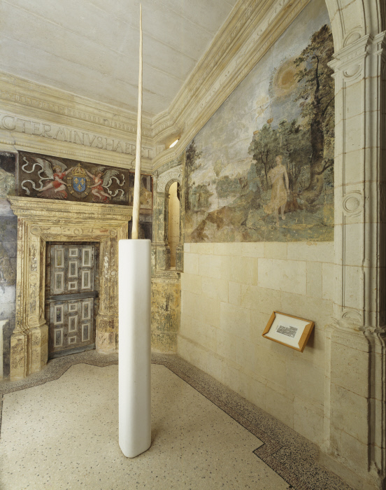 En lien avec le décor du château, l'artiste utilise l'image de l'animal mythique dont la guérison est légendaire. Jusqu'au XVIIe siècle, la corne de licorne est très recherchée et convoitée mais elle n'est pas encore mal identifiée. Ce n'est que plus tard que l'on identifie comme dent de narval. Byars avait utilisé cette corne dans une étoffe de soie froissée posée sur une table noire qu'il place à Oiron sur un socle en marbre blanc. Le jour de l'inauguration de la collection, la corne de licorne fut transmise de main en main par une dizaine de jeunes filles habillées de blanc virginal et alignées dans la cour puis donnée à l'artiste vêtu d'habits d'or pour franchir la porte du château.