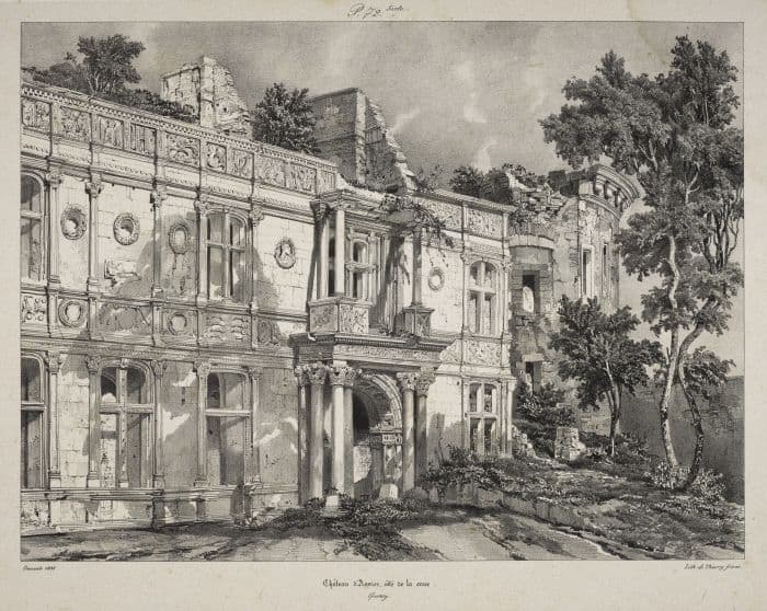POP | Plateforme ouverte du patrimoineLithographie : Château d'Assier, côté de la cour