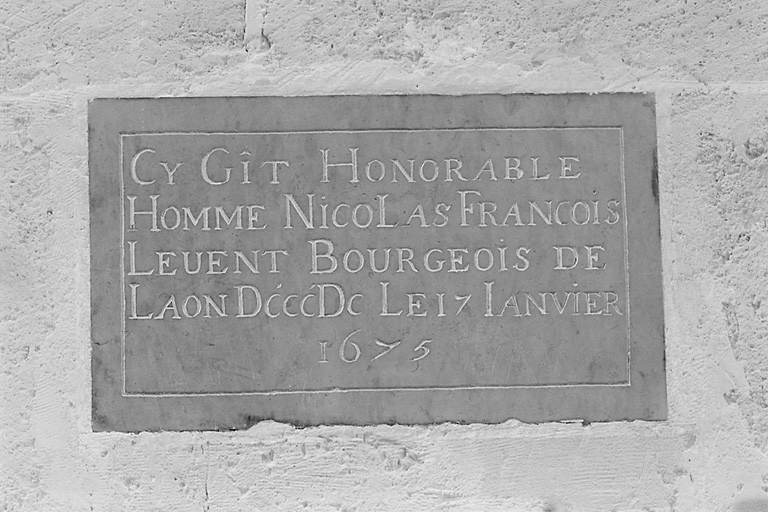 Inscription funéraire de Nicolas François Levent, bourgeois de Laon décédé le 17 janvier 1775.