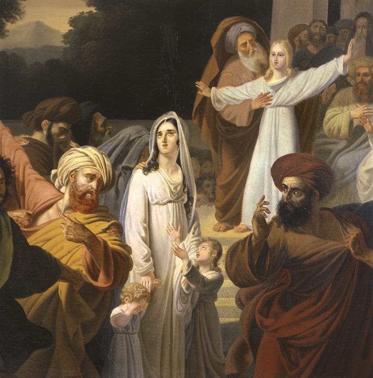 scène biblique ; Daniel jugeant les deux vieillards ; Suzanne ; groupe de figures ; foule ; colère ; vue d'architecture ; temple ; Egypte ; ornement à forme géométrique