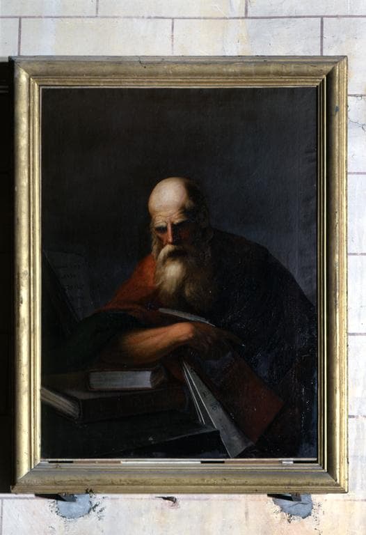 Série de 4 tableaux et leurs cadres : saint Ambroise, saint Augustin, saint Grégoire, saint Jérôme