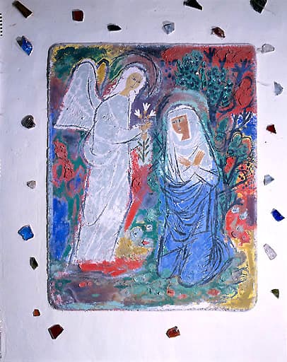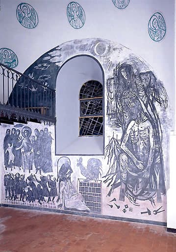 POP | Plateforme ouverte du patrimoinePeintures monumentales du narthex : Annonciation, Vierge à l'Enfant dite Notre-Dame de la Joie, Annonce aux bergers, Nativité, Fuite en Egypte, Jésus bénissant les enfants, Reniement de saint Pierre, Pieta, Anges