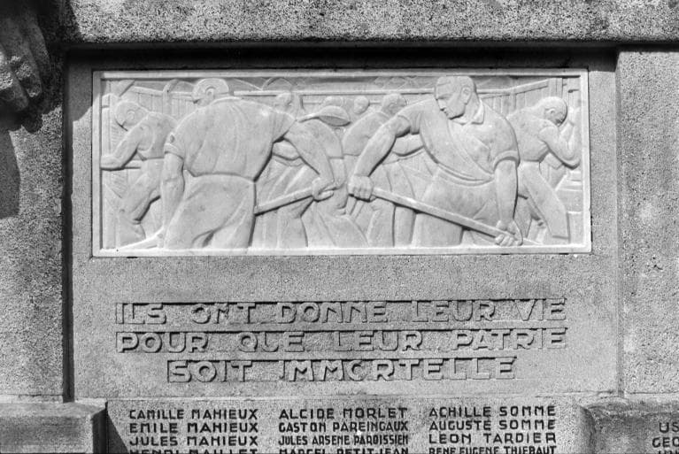 POP | Plateforme ouverte du patrimoineEnsemble de 2 bas-reliefs du monument aux morts de la Société du Familistère : la Famille et le Travail