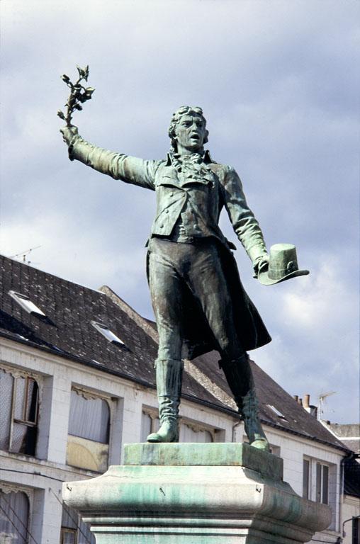Le modèle en plâtre de la statue de Doublemard a été présenté au Salon de 1882 (n° 4318), où d'autres sculpteurs, comme Carrier-Belleuse et Vital-Cornu, exposaient le même sujet en perspective des commandes publiques, qui ne manqueraient pas d'accompagner en 1889 la célébration du centenaire de la Révolution française.Le projet de Doublemard a été retenu par l’État pour être réalisé en bronze pour la ville natale du conventionnel, et a été fondu dans l'atelier de Maurice Denonvilliers à Vouvray (Indre-et-Loire). La statue est en place dès 1884, semble-t-il, et un modèle réduit est présenté à l'Exposition nationale des beaux-arts de 1883 (n° 966) et à l'Exposition universelle de 1889 (n° 1810).Déboulonnée par l'occupant allemand durant la Première Guerre mondiale, la statue est temporairement remplacée par le buste en marbre du conventionnel réalisée par Alexandre Lesquien en 1881 et conservée à l'hôtel de ville. L'effigie en pied est reconstituée d'après l'original par Charpentier, élève de Doublemard, et fondue dans les ateliers Durenne et Val d'Osne à Paris.Le monument à nouveau complet est inauguré le 18 avril 1923. A nouveau emportée par l'occupant durant la Seconde Guerre mondiale, la statue est encore une fois remplacée par le buste en marbre, avant d'être rétablie par Charlet (?), probablement à partir du moule de Charpentier resté en la possession de la Ville, et inaugurée le 14 juillet 1949.