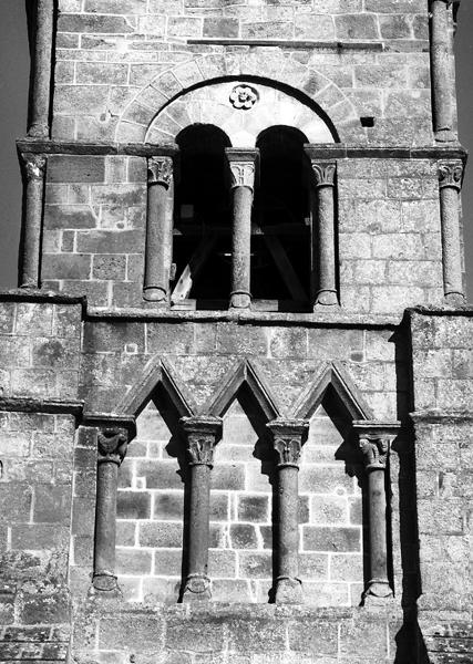 Au 12e siècle, une campagne de travaux vise à moderniser l'église, notamment en la dotant d'un clocher de pierre décoré des chapiteaux étudiés ici. L'équipe à l'oeuvre pourrait être une de celles qui a participé aux parties romanes des transepts de l'église prieurale de Souvigny, ainsi qu'à la seconde campagne de construction de Saint-Marc de Souvigny (2e quart 12e siècle ?). La flèche, par contre, est une reprise du 13e siècle.