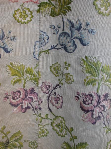 Le tissu de fond est plus ancien (vers 1760-1770) que le tissu du chapon. La chape a dû être restaurée, un chaperon plus récent ayant été adapté à une chape plus ancienne.
