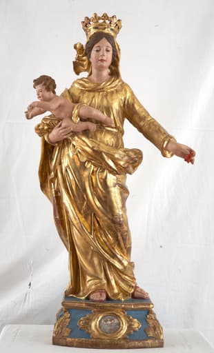 statue-reliquaire (petite nature, socle-reliquaire) de la Vierge à l'Enfant dite Notre-Dame-de-Vers-la-Ville