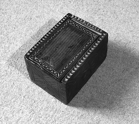 bois : taillé (décor en bas relief), gravé, décor poinçonné