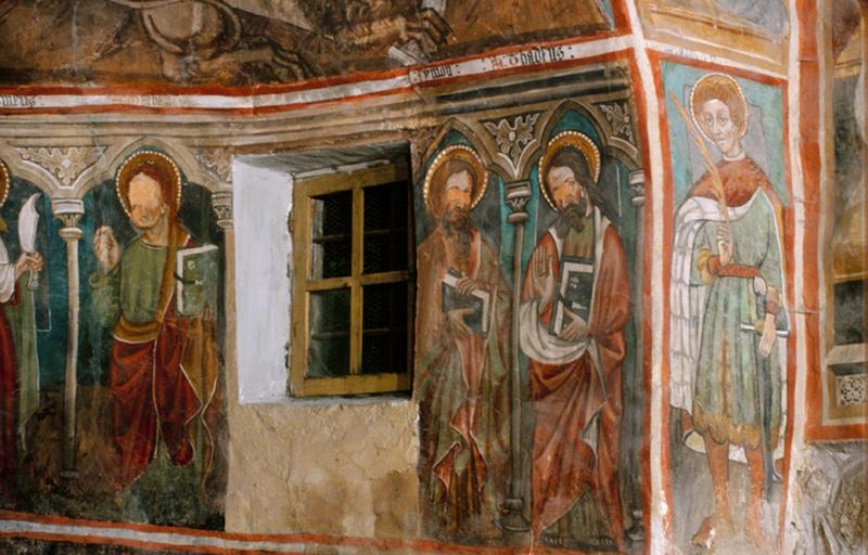 peintures monumentales : Saint Laurent, Saint Hippolyte, Annonciation, Apôtres, Christ en majesté, Tétramorphe