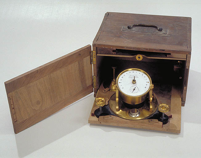 Héliostat complet avec ses accessoires dans son coffret d'origine. L'héliostat est posé sur un support en acier à trois vis calantes et un niveau à bulle. La boîte du système d'horlogerie est en laiton. Sur le cadran émaillé, outre la marque du fabricant, une graduation en chiffres romains de IV à XII et de I à VIII, soit 17 heures, subdivisée en 10 minutes. Les accessoires : un petit miroir orientable avec son pied en laiton et une barrette calendrier permettant de régler l'appareil en fonction de la hauteur annuelle du soleil.