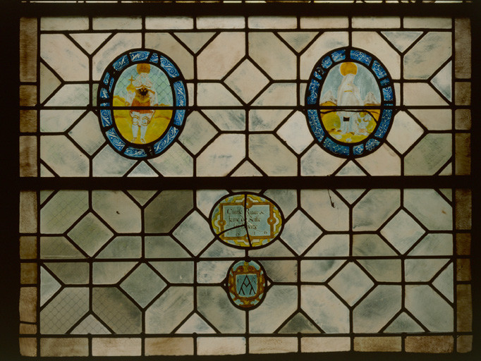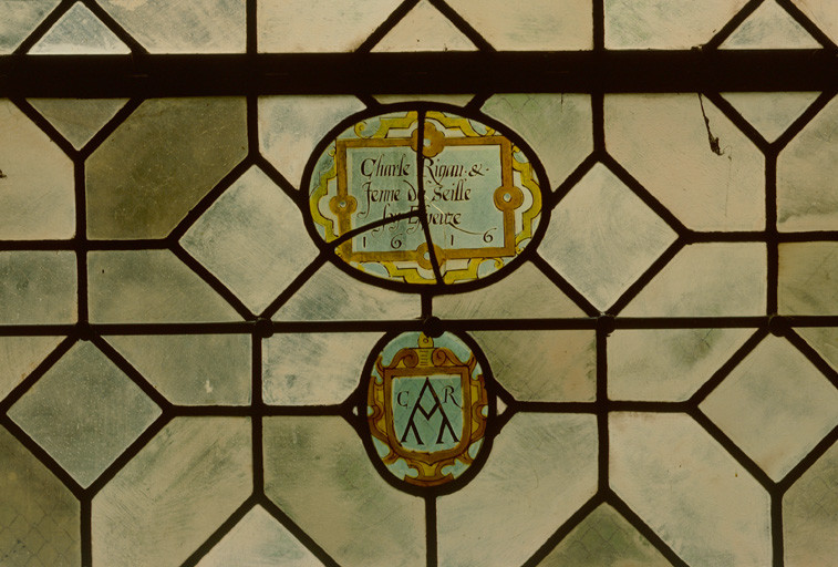 Panneaux du début du 17e siècle ; un des médaillons, daté de 1616, comporte une inscription de donation (par Charles Rigau et Jeanne de Seille son épouse).