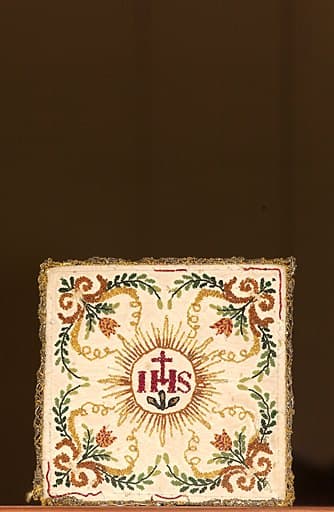 pale : I.H.S. apparaissant dans une nuée et des rinceaux végétaux