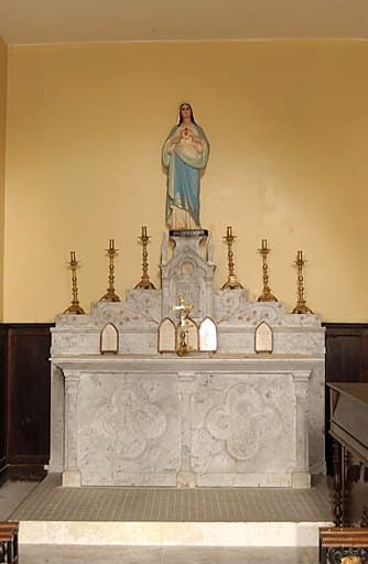 POP | Plateforme ouverte du patrimoineensemble de l'autel secondaire de la Vierge, de style néo-gothique : autel tombeau, gradin d'autel, tabernacle architecturé et statue (petite nature) : Vierge du Sacré-Coeur