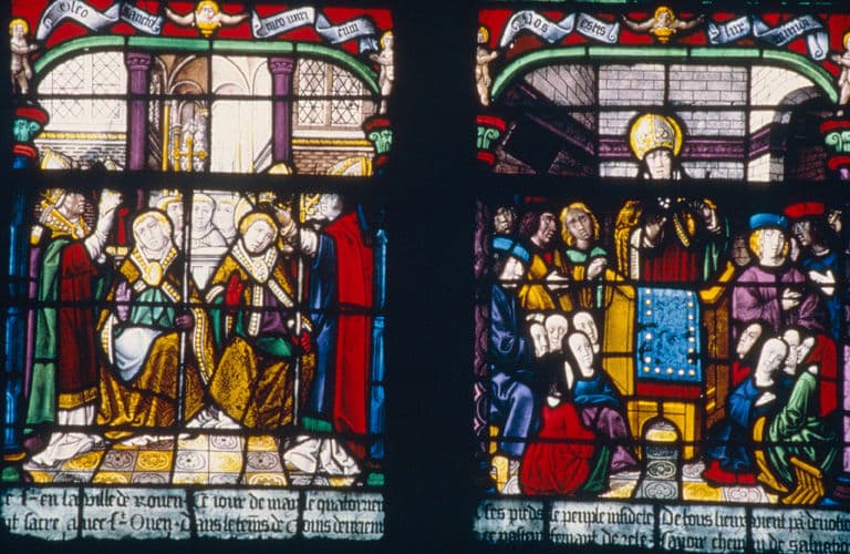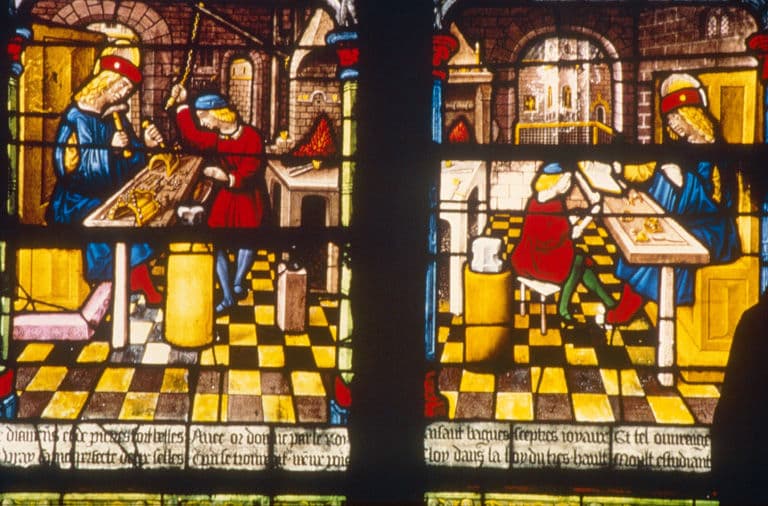 verrière hagiographique : légende de saint Eloi (baie 0)