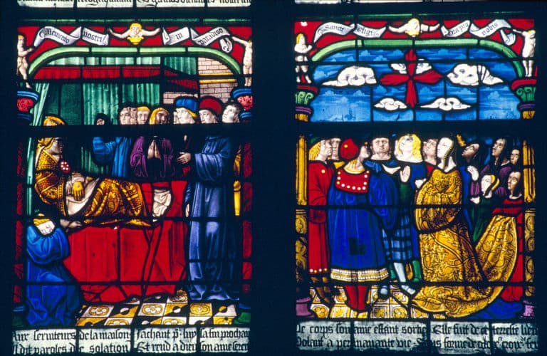 POP | Plateforme ouverte du patrimoineverrière hagiographique : légende de saint Eloi (baie 0)