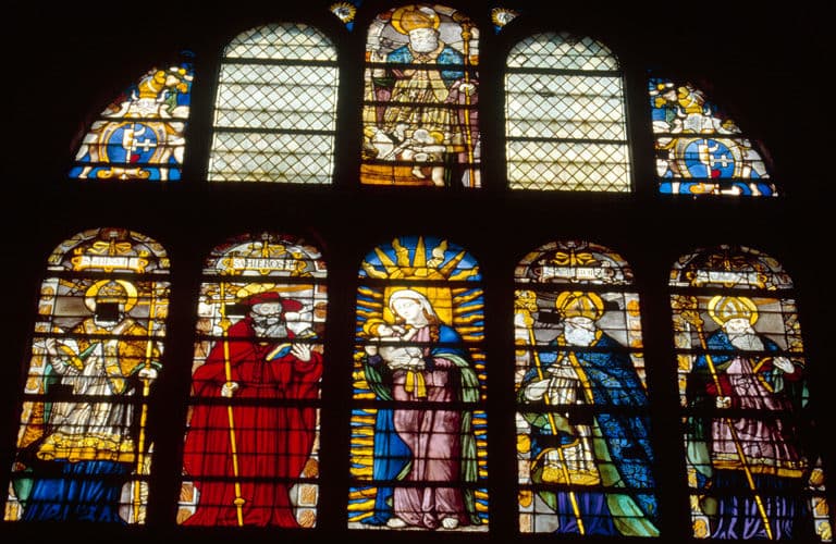 verrière figurée : saint Nicolas, Vierge à l'Enfant (baie 106)