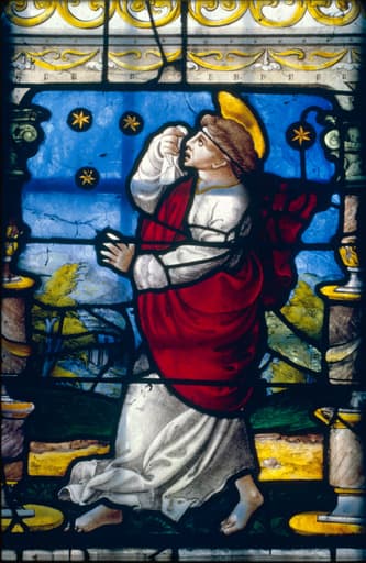 verre transparent (coloré) : montage en chef-d'oeuvre, sanguine sur verre