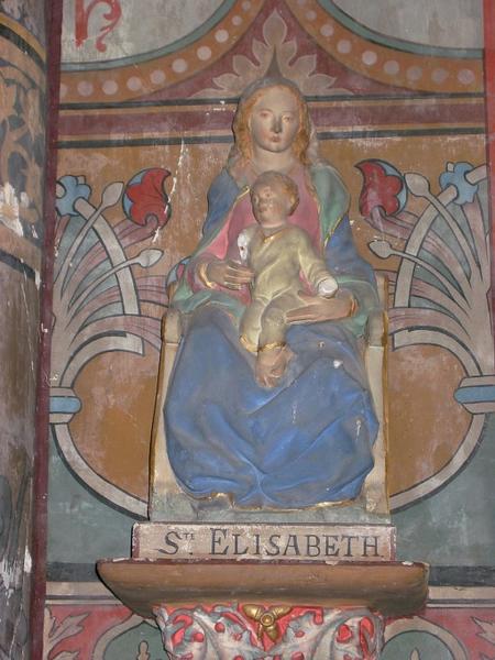 Il manque les bras de l'Enfant ; la main droite de la sainte a été cassée et recollée.