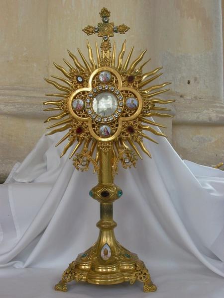 Les quatre Évangélistes autour de la lunule et le Christ sur le pied.