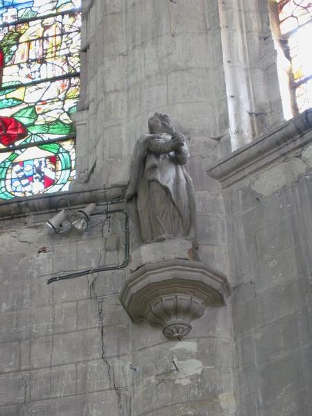 Socle vermoulu. La statue l'est-elle aussi ? Badigeon encrassé. Traces de dorure et de polychromie ancienne (apparent par écaillage).