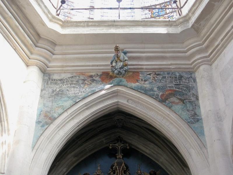 Ronde bosse à mi-corps émergeant du sommet de la fresque.