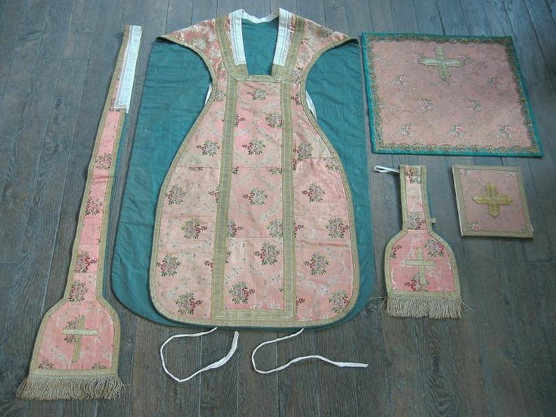 chasuble ; étole de clerc ; manipule ; voile de calice ; bourse de corporal