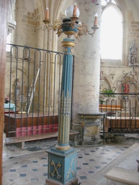 fonte de fer ; fer : forgé, doré ; bois : taillé, doré, polychrome (bleu)