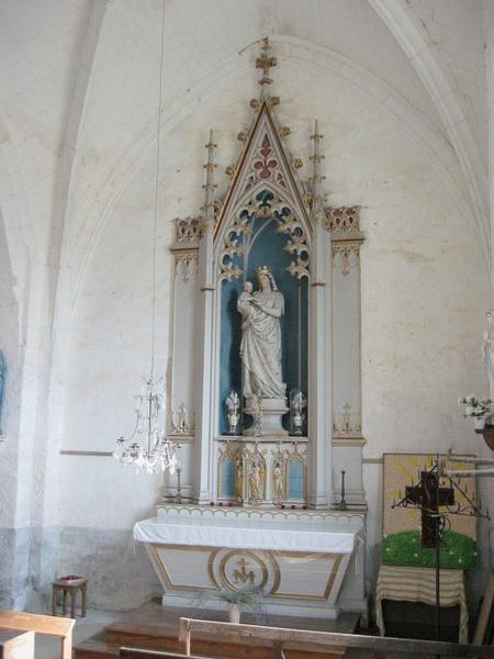 Autel et retable, tabernacle, statue : Vierge à 'Enfant