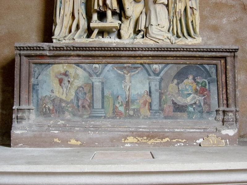 Retable : Crucifixion, Mise au tombeau, Résurrection