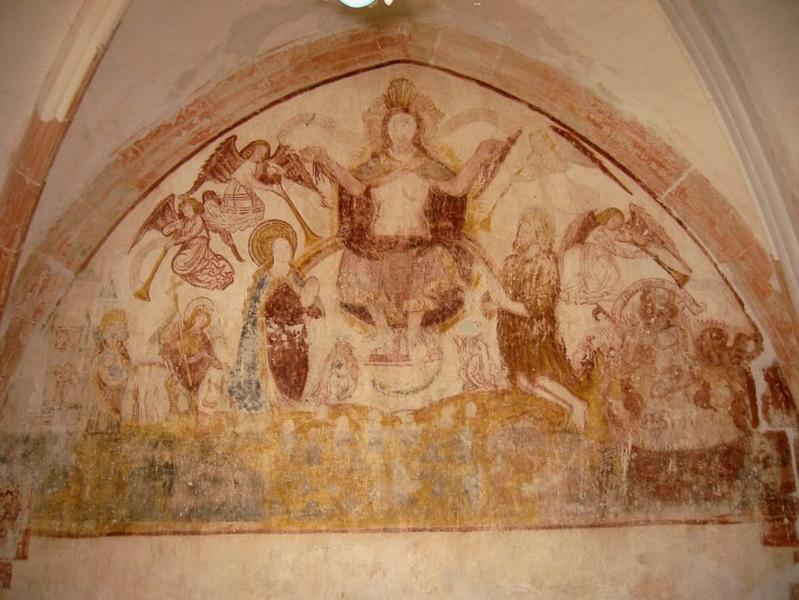 Jugement dernier ; saint Michel archange ; saint Pierre ; Christ glorieux ; saint Jean-Baptiste ; Vierge ; figures : en donateur