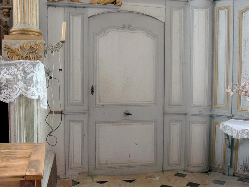 Couvrent les trois pans de l'abside, joignent les autels latéraux, et couvrent les murs des bas-côtés sur 2 mètres de longueur. Deux portes permettent d'accéder à la sacristie. Moulurations dorées.