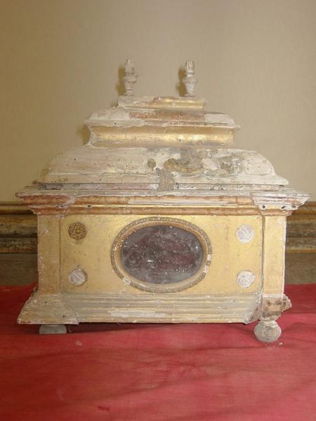 Deux châsses abîmées se trouvent en sacristie, deux autres sont en place sur le maître-autel.