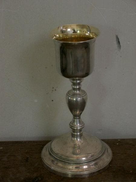 La coupe est en argent, le pied en cuivre et le noeud en laiton.